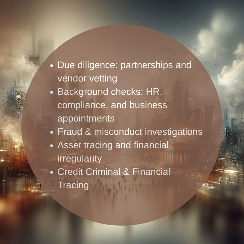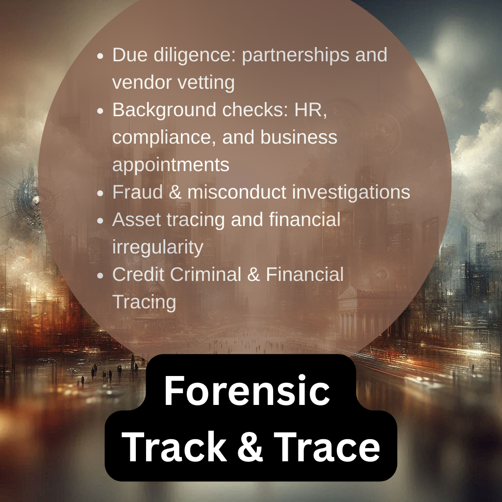 We provide discreet, accurate, and legally defensible investigative intelligence to trace assets, verify identities, and uncover fraud or misconduct.