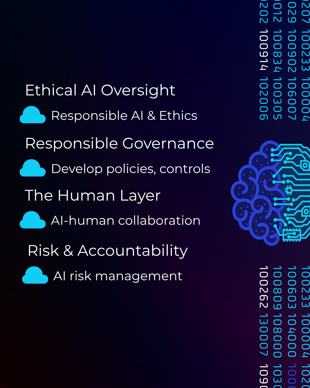 We guide organisations through safe, ethical, and human‑centred AI adoption — balancing innovation with governance, transparency, and accountability.