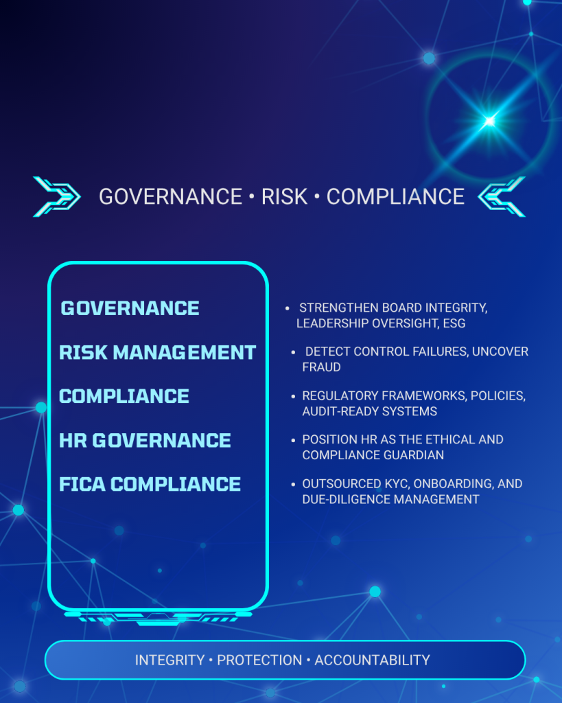 Governance, HR, AI, Forensics, and Transformation for South African organisations.